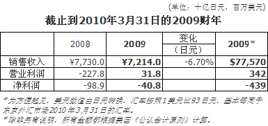 ·2009财年索尼集团成功扭亏,实现3.42亿美元营业利润;