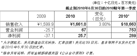 截止到2010年6月30日的2010财年第一季度综合业绩