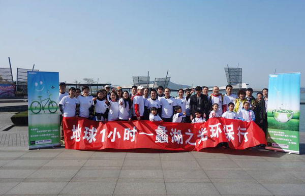 索尼电子(无锡)有限公司举行环保行走,向途经游客介绍地球一小时的环保活动,同时索尼志愿者还在湖边拾捡垃圾,身体力行的展示环保理念。