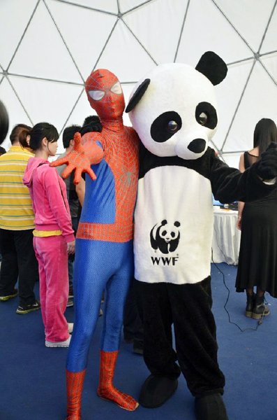 代言人超凡蜘蛛侠亮相北京世贸天阶的“地球一小时”活动