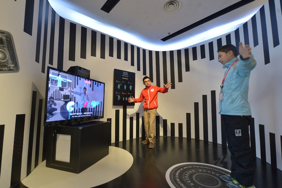 在AR Action Scope区域,您将摆脱平板电脑,体验更加神奇的Smart AR技术。只需在电视屏幕前开合双手,您就能翻转、放大、打开屏幕中的数码相机及摄相机,观测其内部结构。您将看到CCD传感器、内置变焦镜头、空间光学手抖矫正单元等内部结构,了解他们是如何带来高质量的照片及影像的。同时,该展区还通过两台摄相机的直观对比,让您亲身体验“平稳光学防抖”的神奇。按下开关,开启台面振动,在同样抖动的频率及幅度下,普通摄像机画面已一片模糊,而具备“平稳光学防抖”技术的摄像机还能拍摄出清晰的画面。