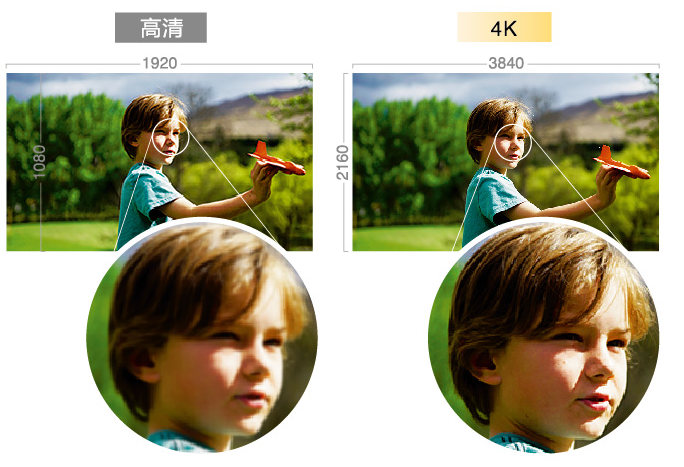 4K视频的分辨率是3840×2160,为高清分辨率(1920×1080)的4倍,影像细节提升非常显著。目前,随着4K电视、4K显示器以及高分辨率电脑的不断普及,4K摄像机的市场需求也正同步大幅攀升。