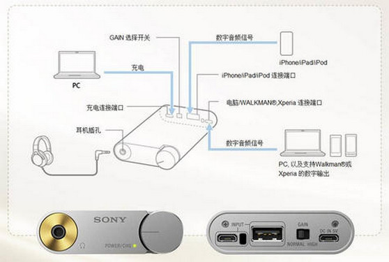 此外还可助力提升多种随身设备音质。它支持与Walkman®/Xperia™/iPhone/iPod等高音质数字设备连接,可将保存在这些播放设备上的音频数据以数字信号传输、通过PHA-1A的高品质数模转换器DAC进行数字模拟转换,实现原汁原味的高音质。