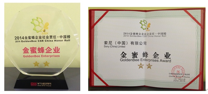 在本届论坛上,“金蜜蜂企业社会责任•中国榜”第8次隆重发布。自2010年和2011年分别获奖后,索尼(中国)有限公司再次参加“金蜜蜂企业社会责任中国榜”活动,通过提交评估问卷和责任竞争力实践案例及专家委员会的审核,索尼(中国)同另外24家企业一起从数百家参评企业中脱颖而出,获得“金蜜蜂企业”称号,并入选《2014金蜜蜂责任竞争力案例集》 。
