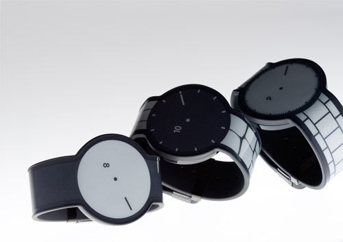 一款平面的时尚腕表,整个表面由电子纸构成,它个性化的设计可以令用户从24种模式中选取适合个人衣着和心情的一种。
