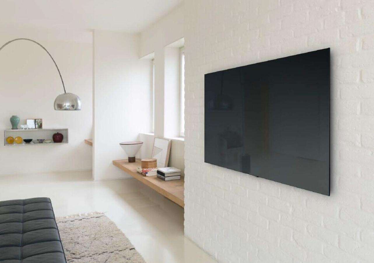 令人难以置信的不仅是X9000C的4.9毫米超薄机身,其在壁挂方面的巧妙设计,更是独具匠心。普通的电视通过在机身背部与墙体分别安装壁挂组件来实现壁挂,而X9000C在机身背部壁挂件上做了减法,只需从机身背部下方较厚的部分拉出壁挂U形钩,挂在专门设计的墙体壁挂件上就可以完成壁挂,并且壁挂钩占用的是超薄部分后方的空余空间,充分利用了壁挂的每一寸空间。这让X9000C壁挂后,墙面与屏幕表面的距离仅4厘米,让人感觉电视紧贴并悬浮于墙面,犹如浮空映画。而对比之下,普通电视与曲面电视在壁挂后显得格外臃肿,打乱了简约客厅空间的极简风格。