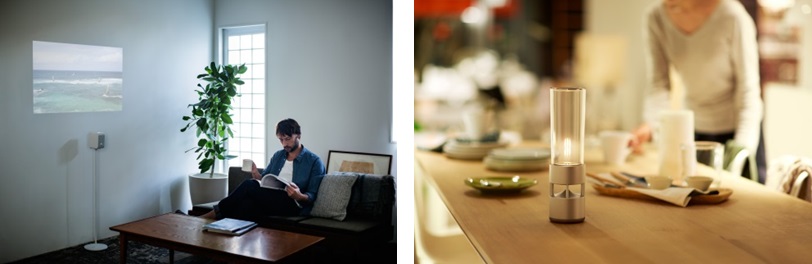 索尼生活空间体验(Life Space UX)产品阵容打破窠臼,致力于从根本上改变您与物理居住空间的交互方式以及带来革新的娱乐体验方式。已在日本上市的LED灯泡扬声器,可与任何居住空间融为一体。把它拧在任一灯座上,您就可以在家中随地享受无线音乐。LED灯泡扬声器将于2016财年上半年在美国发布。索尼还将发布搭载内置扬声器及电池的10厘米立方体大小的便携超短焦投影仪。尽管身材娇小,该款投影仪可在墙面、桌面或其他适宜的表面投射22" 至80"的图像。最后,索尼还将发布玻璃扬声器。这款管状有机玻璃包裹着LED光源的扬声器,可将清澈通透的音乐填满房间的各个角落。同时它还能让房间沐浴着温暖光芒,与各类室内装饰和谐搭配。便携超短焦投影仪和玻璃扬声器都将于2016年春季在日本以及2016财年上半年内在美国正式发布。