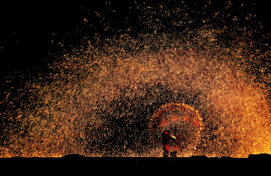 ©王利军,《打树花》,中国专项奖第三名,2016年索尼世界摄影大赛。