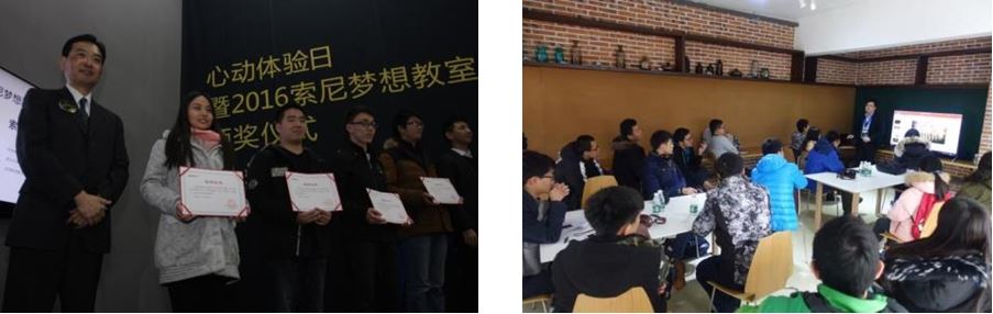 在成果发表会上,索尼(中国)有限公司总代表根本章二先生向取得优秀支教成果的大学生优秀团队颁发了荣誉证书。根本先生表示:“‘为了下一代’是索尼公司一直以来秉承的企业社会责任理念,索尼中国成立20周年来,我们也一直致力于为中国的教育事业发展做出贡献。‘索尼梦想教室’的独特之处在于,我们不仅给孩子们提供科技教育设施,还将利用索尼公司在科普教育领域的丰富经验,持续给孩子们带来形式多样、生动有趣的科学课堂,希望‘索尼梦想教室’帮助更多的中国青少年实现科学梦想。”