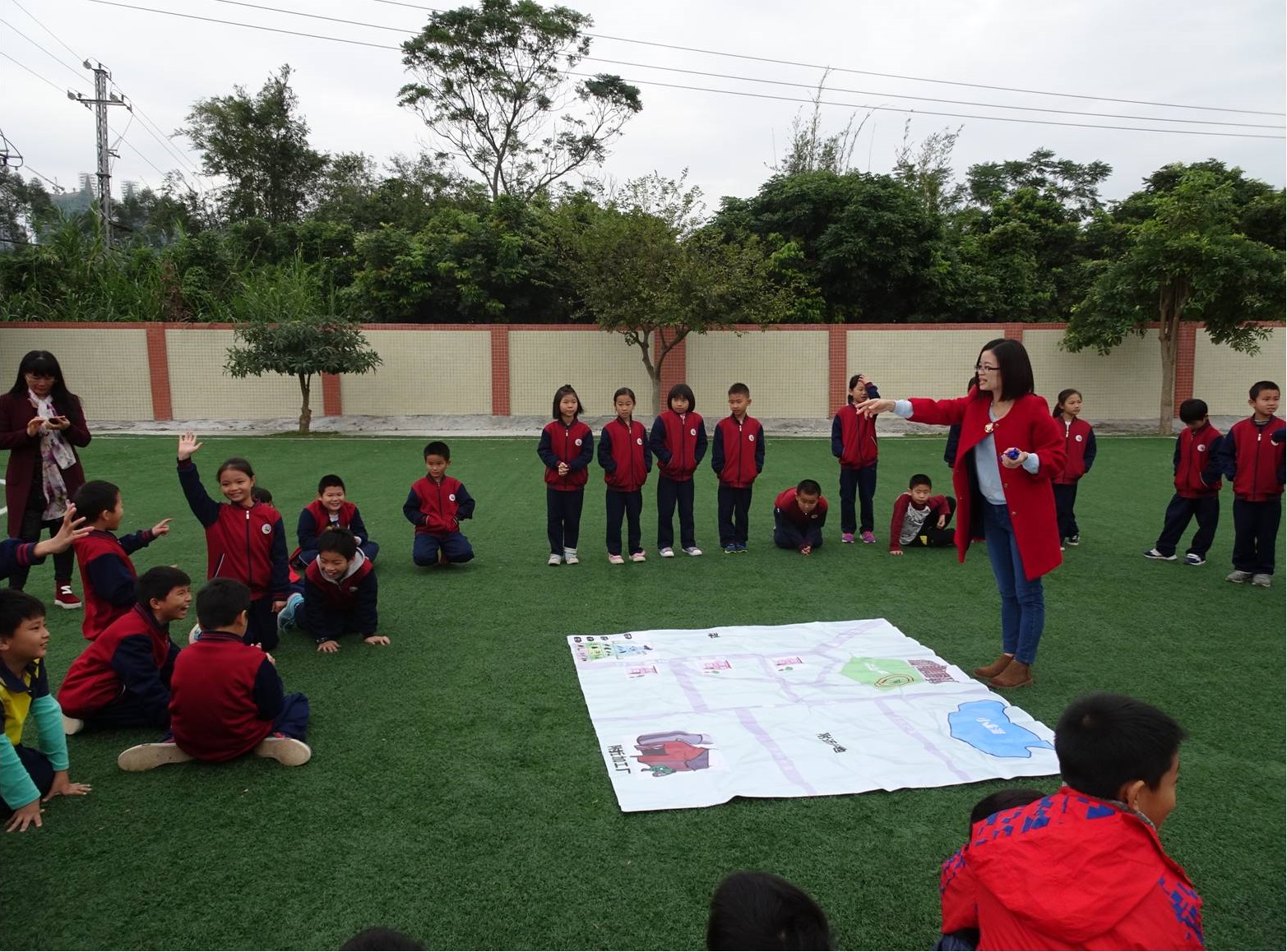 之后环境事务局的工作人员带领小学生们开展室外生物多样性认知活动。先将全班学生分成4组,每组选出2名代表。同学们在校区观察生物后,由各组代表在地图(环境事务局根据小学周边实际制作)上填写所观察到的生物名称(动物、植物、微生物)。在孩子们的欢笑声中,本次活动圆满落幕。