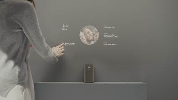 投影仪可以在墙壁或桌子等平面上投射一块交互式触摸屏,它的概念是要创建一种交互、便捷的方式,便于与朋友及家人的沟通以及分享体验。