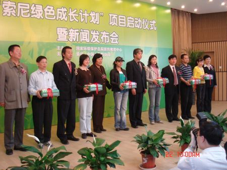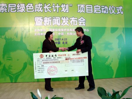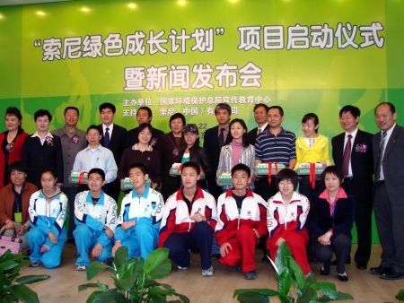 启动仪式上,索尼(中国)有限公司向国家环保总局宣教中心捐赠216万元人民币,用于“索尼绿色成长计划”项目的实施。该计划是一项为期两年的青少年环境教育项目,其宗旨为进一步提高青少年环境意识,鼓励青少年学习环保知识,关心身边的环境问题,积极为社会的可持续发展做出贡献。项目分为绿色培育计划和绿色行动计划两个阶段,将在中学生中开展系列环保活动。通过支持学校建立绿色书架和开展环保读书活动,鼓励青少年学习基本的环境科学知识,懂得人与自然要和谐相处的基本理念;通过举办环保征文摄影比赛,积极引导青少年关注身边的环境问题,使其在成长过程中培养热爱自然、保护地球环境的意识和对环境的责任感;通过绿色行动方案设计大赛并为优秀绿色行动方案实施提供资金支持,鼓励青少年学会如何从自身开始,从身边的小事做起,积极参与保护环境的实际行动,在成长过程参与环境保护与可持续发展的实践,成为爱护环境、保护环境、建设环境的绿色公民。此项目将注重提高青少年的环保意识,培养良好的环保习惯,并将环保意识贯彻到实际生活中。用青少年敏锐的视角,独特的创新能力,以及对事物探究的好奇心去观察环境问题,思考环境问题,形成一些不同以往、贴近生活的环保方案,并从项目组得到资金资助,以实施执行各自的方案。