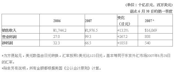东京2007年7月26日讯—索尼集团今日宣布2007财年(2007年4月1日至2008年3月31日)第一季度(2007年4月1日至6月30日)综合业绩。