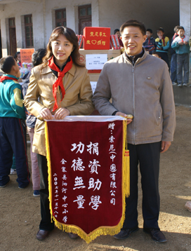 作为有着长期公益传统和CSR(企业社会责任)理念的企业,索尼公司还向北京办公室员工发出了为“向为大别山留守儿童献出爱心的号召”,短短几天内共收到捐赠物品包括书籍近百本,各种新购文具二千多件。此外公司还特别购置了大批图书和体育器材。