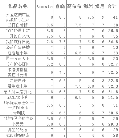 本次大赛几位评委分别从不同角度对参赛作品进行了评审,索尼评委组看重视频内容的意义,ACOSTA关注精彩的创意,春晓喜欢时尚、精美的画面,著名导演高希希对作者的拍摄、编辑技巧要求颇高,著名作家海岩则更注重作品情节的合理性与故事性。