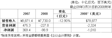 2009年5月14日,索尼公司今天宣布2008财年(2008年4月1日至2009年3月31日)综合业绩。
