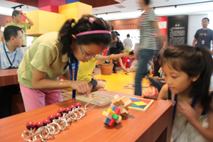 本次活动涉及七巧板、九连环、华容道和鲁班锁四大类中国古代经典智力玩具。其中,“七巧板智力拼图游戏”受到小朋友们的普遍欢迎。应众多小朋友及家长的要求,索尼探梦 “七巧板家庭拼图课堂”由原来的每周末13:00和17:00的两个场次,增至为平常日和周末每天四场,10:00/14:00/15:00/16:00,更多的小朋友和家长们可以在老师的指导下体验由浅入深的拼图游戏带来的乐趣。