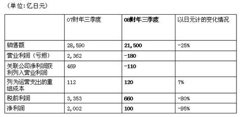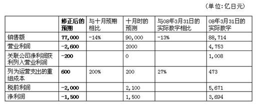 1、 财年(即将于2009年3月31日结束)下半年的合并销售和营业利润,比十月份预测时要明显降低。这主要受累于全球经济放缓所带来的商业环境恶化、日元的持续升值、日本股票市场的下跌、以及可预见的重组费用的上升。