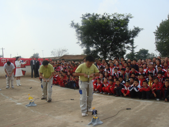 祖国60年华诞前夕,美丽的金秋时节,陕西省咸阳市旬邑县土桥镇中心小学和往日不同,操场上传来同学们兴高采烈地欢呼声、喝彩声,师生们正在体验“索尼探梦”科技馆全新改版的科普实验下乡,从北京远道而来的讲解员们为孩子们献上了一堂别开生面的科普实验课。