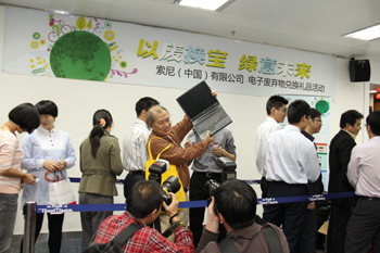 随着《条例》的实施,政府、电器电子产品的生产销售企业、回收处理企业以及消费者都开始越来越重视电器电子产品的资源回收再利用。为此,2011年11月10日,索尼(中国)有限公司联合天河城集团,在上海新金桥环保有限公司的支持、以及国家环境保护部宣传教育中心的指导下,共同于粤海天河城大厦23层的索尼(中国)有限公司广州分公司内举办“以废换宝 绿意未来”电子废弃物兑换礼品活动!