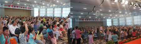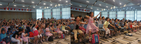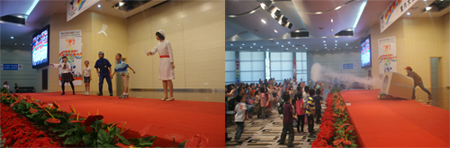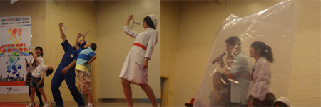 在“大型室内精品实验表演”活动现场,纸片做成的“飞去来器”神奇地旋转飞回手中、“氦气使声音产生的奇妙变化”、“空气炮”带来的巨大威力等异常精彩的科普表演引起了孩子们的阵阵掌声。“科普童话剧”作为“索尼探梦”独创艺术形式,其经典剧目之一“声音的奇想之旅”以“声音”为主题,巧妙地融合了知识和趣味,将新颖的科学实验与离奇生动的剧情相结合,配以童话剧变幻多样的音乐与节奏、夸张幽默的风格,深受孩子们的欢迎,几乎场场爆满。