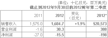 截止到2012年9月30日的2012财年第二季度综合业绩