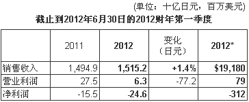 截止到2012年6月30日的2012财年第一季度综合业绩