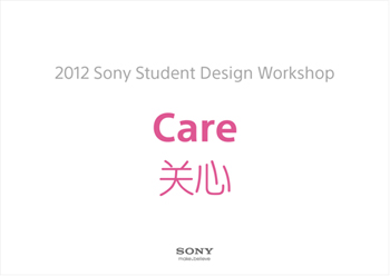 在全球老龄化和婴儿潮趋势日渐明显的当下,越来越多的群体需要得到关心。同时经济增长带来的新的生活方式让我们觉得索尼的产品和科技应该更加致力于服务关注人们新的生活方式和生活体验。因此,索尼学生设计工作坊2012年提出了“关心”的主题。