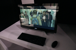 索尼在CES2012上展示数款应用新技术的VAIO电脑产品,为用户提供更多娱乐选择和产品设计,帮助用户实现更好的工作效率和移动性能。图为集合了BRAVIA技术和裸眼3D技术的一体式电脑。