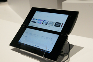 作为索尼各产品领域的新品之一,平板电脑使用户体验又迈上了一个新台阶。第一款上市的产品,S系列索尼平板电脑,以9.4英寸显示屏,适合充满活力的媒体娱乐。现在,索尼P系列平板电脑,更将平板电脑的设计发挥得淋漓尽致,其鼎故革新的双屏设计令两个5.5英寸显示屏可用来同时完成不同功能,比如一个在播放视频、另一个作为遥控器,或用一个查看电子邮件、另一个作键盘使用。用户也可以将双屏合一,它的独特折叠设计使它可被轻松放入外衣口袋或手提包。