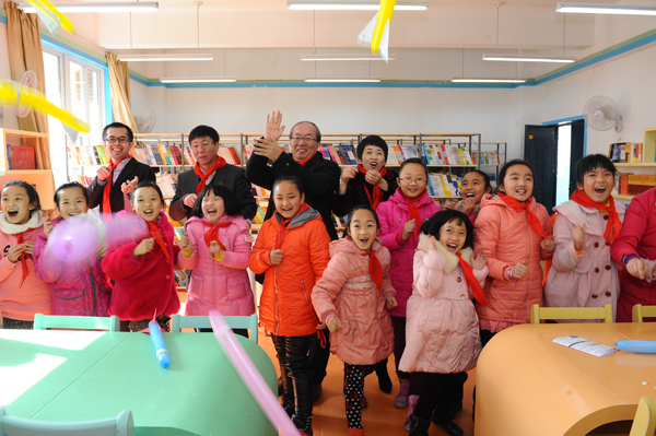 活动当天,10个“索尼安康图书馆”也正式在雅安落户。在整洁、明亮的“索尼安康图书馆”中,小学生们进行了一场诗歌朗诵,与会嘉宾也在图书馆中与学生交流畅谈读书感受。令孩子们惊喜的是,在嫦娥三号即将着陆月球之际,“索尼探梦”科技馆的实验老师为孩子们带来了一堂生动有趣的“气球火箭”实验课。他们向孩子们生动地讲解空气动力原理,跟孩子们一起制作“气球火箭”。同学们被生动有趣的科学实验深深吸引,专心致志地亲手制作并一起体验神奇的实验效果,玩得不亦乐乎。被孩子们的热情感染,嘉宾们也加入其中,与孩子们一起制作,并进行了一场“气球火箭”的友谊赛,真切体验到了科学的快乐与魅力!