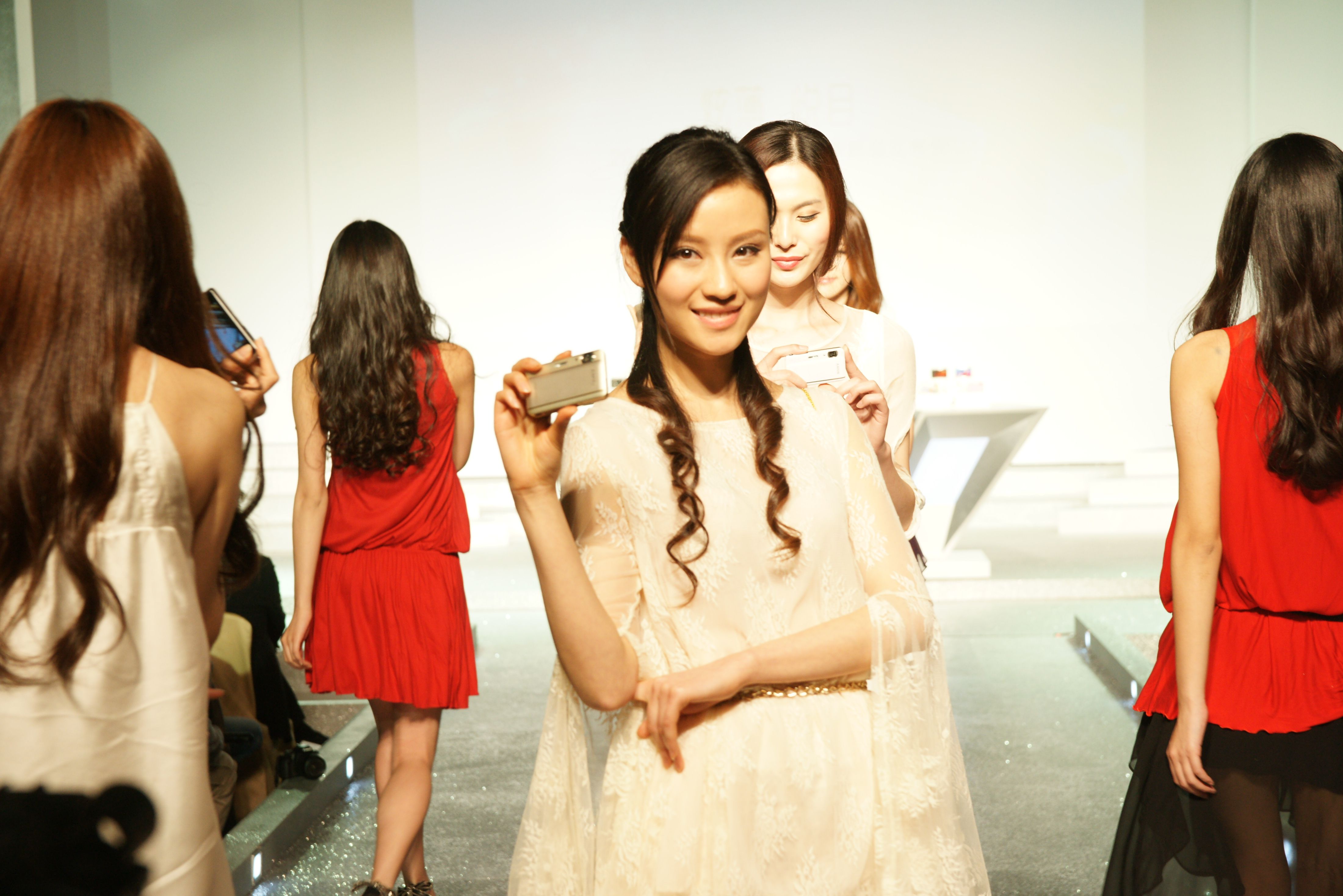 领导与模特展示索尼Cyber-shot2012春季新品