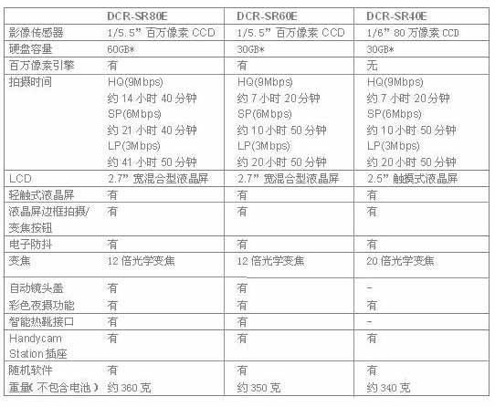 全新SR系列将于9月上旬上市,市场建议零售价为DCR-SR80E,人民币7480元;DCR-SR60E,人民币6080元;DCR-SR40E,人民币5280元。