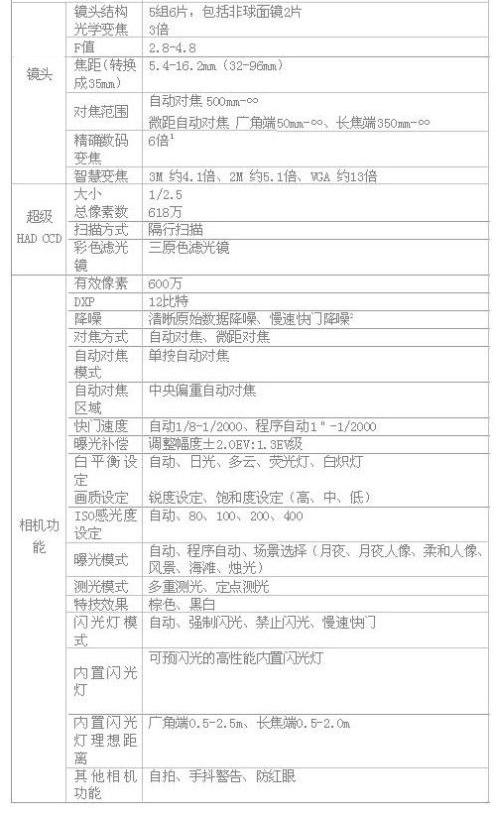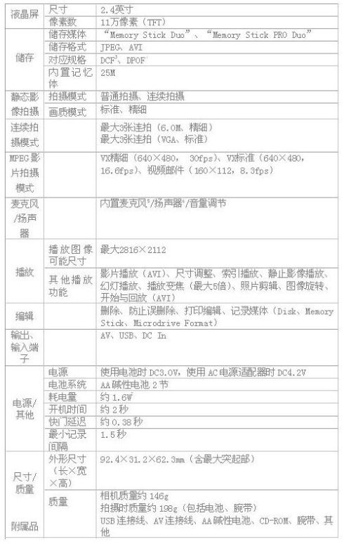 附:DSC-S500详细规格