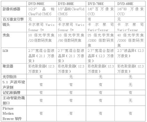 2007年3月7日---索尼公司最新推出4款DVD Handycam®便携式数码摄像机——DVD908E/808E/708E/608E,进一步满足消费者个人视频拍摄的需求。其中,旗舰型号DCR-DVD908E,采用晶锐ClearVid CMOS技术,配合增强型影像处理技术,最高可实现610万像素静态照片*1拍摄,在画质方面都进一步提升;而入门型号DCR-DVD608E亦表现出众,具有超级万能40倍光学变焦,是目前最强劲的光学变焦DVD摄像机。