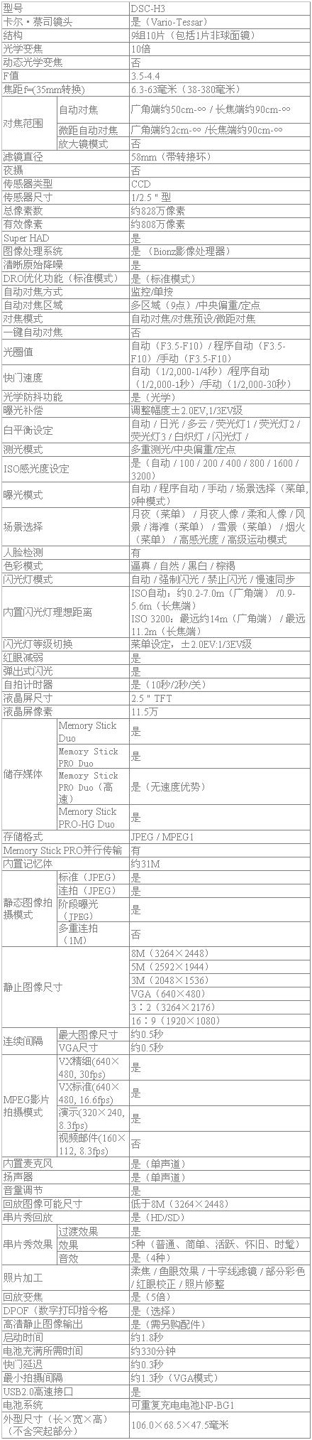 索尼Cyber-shot DSC-H3将于2007年9月初在全国上市。