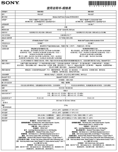 附VAIO VGN-CR2系列基本配置: