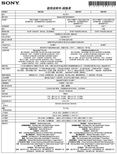 新款VAIO VGN-FZ28、 VGN-FZ27和VAIO VGN-FZ25分别搭载了英特尔®酷睿™2双核处理器 T7700(2.40GHz)、T7500(2.20GHz)和T7250(2GHz),全面支持新一代英特尔®无线标准 PRO/Wireless 4965AGN及新一代移动式英特尔® PM965 高速移动芯片组。同时,还提供了1GB DDR2 SDRAM(667MHz)内存,和配备NVIDIA® TurboCache™技术(PCI Express x16 连接)的NVIDIA® GeForce® Go 8400M GT图形处理单元。借助这些最新技术,VAIO FZ2系列的用户不仅可以在移动环境中享受游戏和网络带来的快感,更可同步运行多种应用,尽享最新科技带来的超强移动性能。