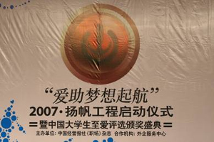 2007年度“中国大学生至爱”评选活动于2007年1月正式启动。经过近半年的网上投票,校园调查和报纸问卷回收,共收到来自新浪、腾讯、中国经营报社网站的约60万张选票、5000份校园调查问卷和近万封高校大学生来函问卷回复。此次评选活动选择如IT数码、食品饮料、服装、日用护理等与大学生相关性最高的25个品类共计250个品牌,经过了开放式调查,十进六、六进三的封闭式调查阶段,以及5月开始为期两个月的前三甲网上投票竞猜阶段,由大学生通过各种渠道投票在每类中选出一个心中最爱,结合数据统计结果,最终得到25个“中国大学生至爱品牌”。