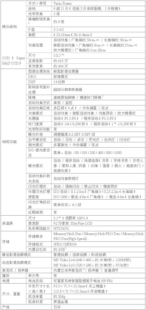 附:Cyber-shot DSC-G1数码相机详细规格