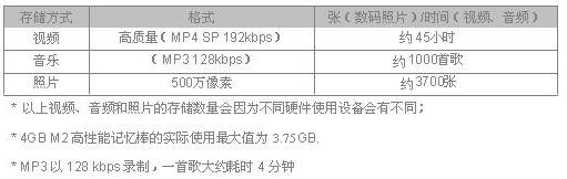 对于喜欢用手机拍照的用户来说,使用即将上市的索爱K858c Cyber-shot™ 拍照手机搭配4GB M2存储卡,能存储高达3700张500万像素的照片;而对于习惯用手机作为音乐享受载体的朋友来说,使用同样即将上市的索爱W908c Walkman® 音乐手机搭配4GB M2存储卡,能存储将近1000首歌曲(MP3格式,128kps)或者享受长达45小时的视频播放(MPEG-4影音文件、192kbps)。索尼4GB M2记忆棒可以充分满足手机用户对多媒体应用的需求,让用户享受到海量存储空间带来的满足体验。