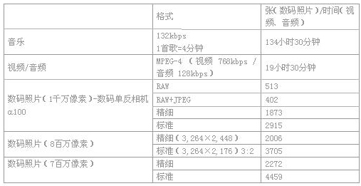 附:8GB记忆棒(Memory Stick PRO Duo)详细规格