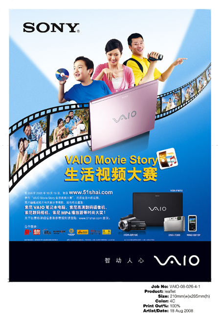 此次“Sony VAIO Movie Story生活视频大赛”主要是以Sony VAIO笔记本电脑中最新加装的“Movie Story”视频编辑软件为核心制作工具,参赛者运用多样化的模板和各类素材即可轻松完成一部完整的高清视频故事。而在8月18日-10月19日的活动期间,参赛选手可以上传作品至http://www.51shai.com/网站。同时,在北京、上海、广州、成都等城市,也都有精彩的VAIO Movie Story生活视频交流会。消费者可以亲临现场感受VAIO笔记本的产品理念,体验高清数字生活所赋予我们的无穷乐趣。