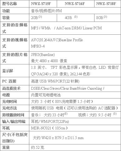 NWZ-S715F (2GB) (3) NWZ-S716F (4GB) (3) NWZ-S718F (8GB) (3)