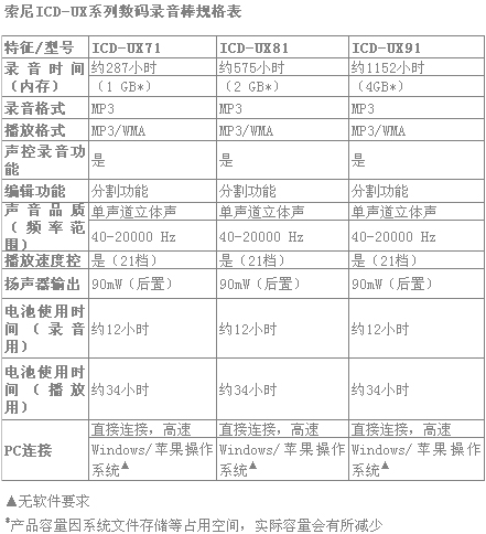 [1]录音时间是指 ICD-UX91F在LP模式下的近似值。