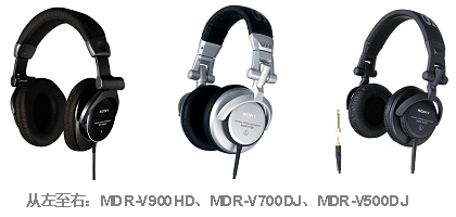 作为索尼监听级耳机,MDR-V系列具有非常专业的声音还原能力,是专业DJ在嘈杂环境中监听音响效果的上佳选择。MDR-V系列共有三种型号MDR-V900HD(黑色)、MDR-V700DJ(银白色)及MDR-V500DJ(黑色)。其中,MDR-V900HD采用了新开发的50毫米直径的高清驱动单元,可以再现80千赫的频率范围,实现厚重低音和清亮高音之间的良好平衡,同时能够表现出记录在DSD或高采样直线式PCM等新一代高品质音频格式中的音乐的细微差别,即使是聆听传统音频格式制作的唱片也同样可以再现音乐的高品质,充分满足了追求高品质视频及音频发烧友的苛刻需求。与此相似,MDR-V700DJ和MDR-V500DJ也同样拥有宽广的音域及优良的音质,尤其是在低音表现力上弹性十足:强劲而不生硬、热情澎湃而又不过分冲动,可以为用户营造出冲击力极强的真实感和现场感,十分适合专业DJ以及追求完美音效的电脑游戏玩家。