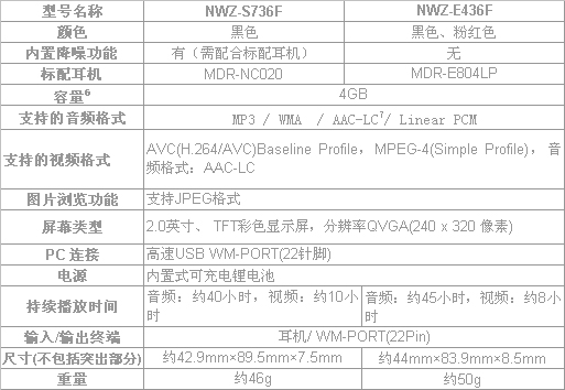 NWZ-S736F和 NWZ-E436F MP4播放器将于2008年10月在中国地区上市。