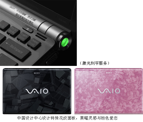 在不断开发创造新产品的同时,如何区别于竞争对手,进一步满足高端用户群体和企业用户的需求,也是VAIO中国策略的重点。目前,索尼产品定制服务已经在中国开展了一年,从最初的几款产品定制,到后来的上千种产品定制型号,索尼不断地根据中国用户需求,满足他们的个人定制内容。此外,随着产品定制服务的不断成熟与完善,今年秋季索尼公司对VAIO产品定制服务,又增加了新的选项。通过新一季的产品定制服务,顾客可以选择激光刻字服务,在X/Z/TT系列的指定位置上以激光的方式刻上中英文文字,去纪念一些值得铭记的时刻、事情,或者是刻上自己想说的话馈赠他人。针对深受年轻人青睐的VAIO CW系列,索尼推出了2款由中国设计中心设计的CW系列特别花纹面板,进一步满足了时尚消费者的个性化需求。