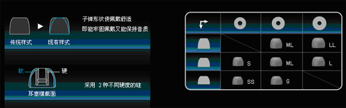混合硅耳塞,结合两种不同硬度的硅。核心部分采用较硬的材料,以保持声音路径,确保声音不会因耳线扭曲而失真。外围部分则采用较软的材料,令佩戴舒适。它还提供了密封性,可以长时间舒适佩戴。为适合不同的耳孔形状,MDR-NC300D提供7种不同的耳塞供您选择。