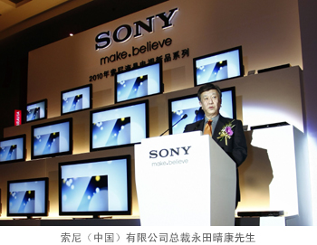 正如索尼(中国)有限公司总裁永田晴康先生在发布会上所提到的:中国市场是索尼集团最重要的液晶电视市场之一,同时也是索尼电视生产的重要基地之一。2010年,我们在中国将坚持以“顾客需求为中心”的创新和发展,进入更多的细分市场。我们的产品线将更加丰富,为各个层次的消费者提供优质产品。我们的渠道将更加贴近消费者,服务更加便利。通过大量的用户体验活动,我们为顾客提供增值服务,让他们真正体验到前所未有的视听娱乐感受。